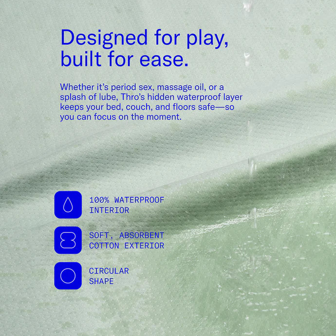 Made from ultra-soft cotton, Thro is a circular sex blanket with a hidden waterproof layer that keeps things mess-free, and a pouch that keeps it travel-ready. Breathable and compact, it's designed for whatever you're into-from period sex to breakfast in bed, to picnic under the stars. Comes in three colors: sage, oat & copper.